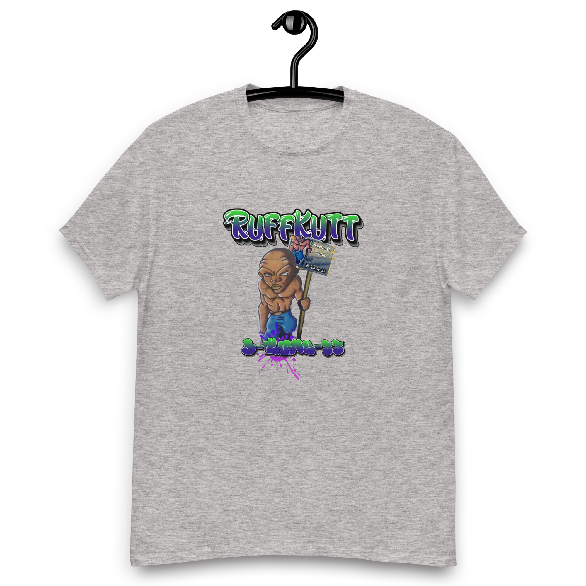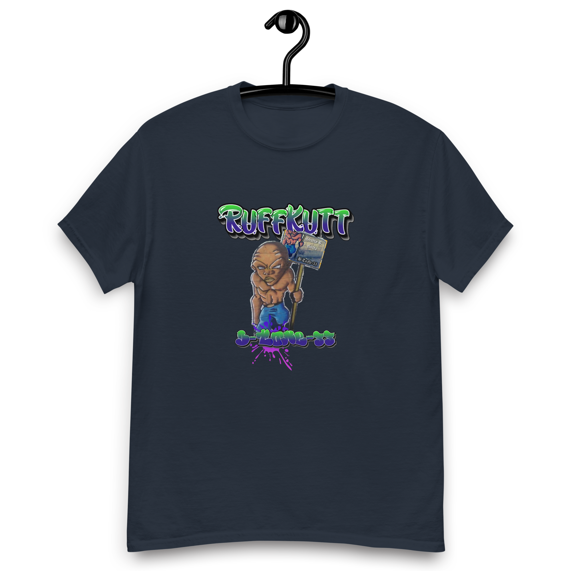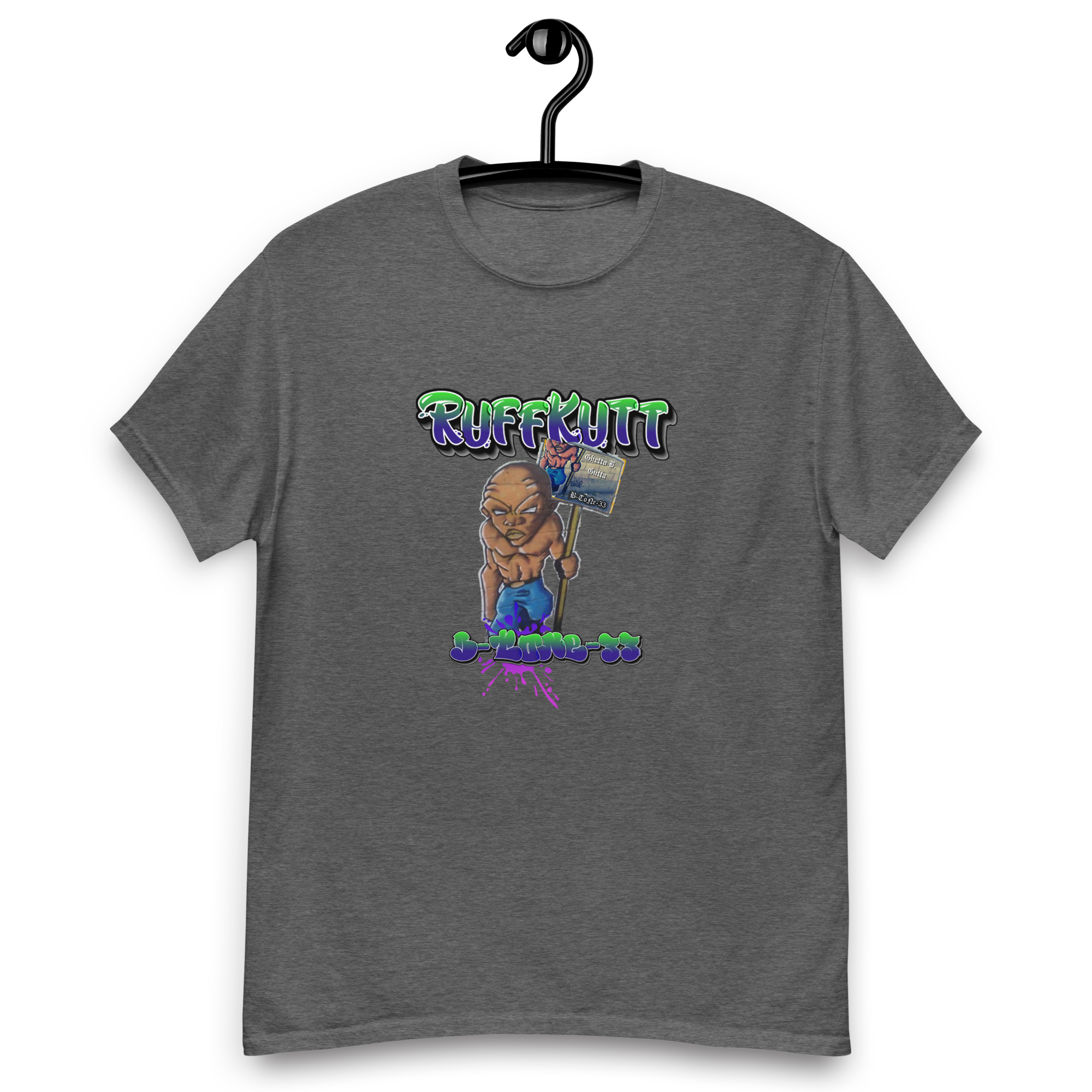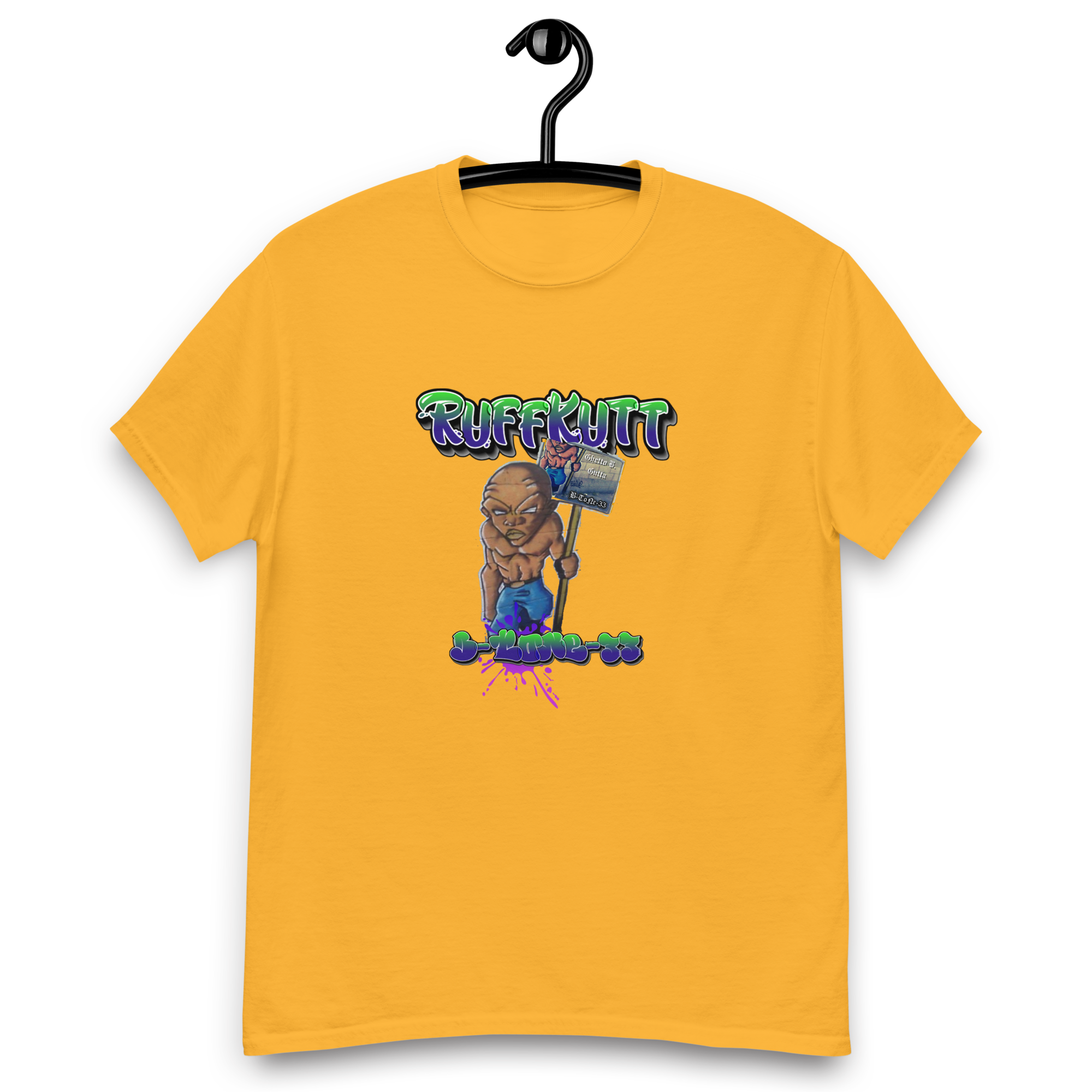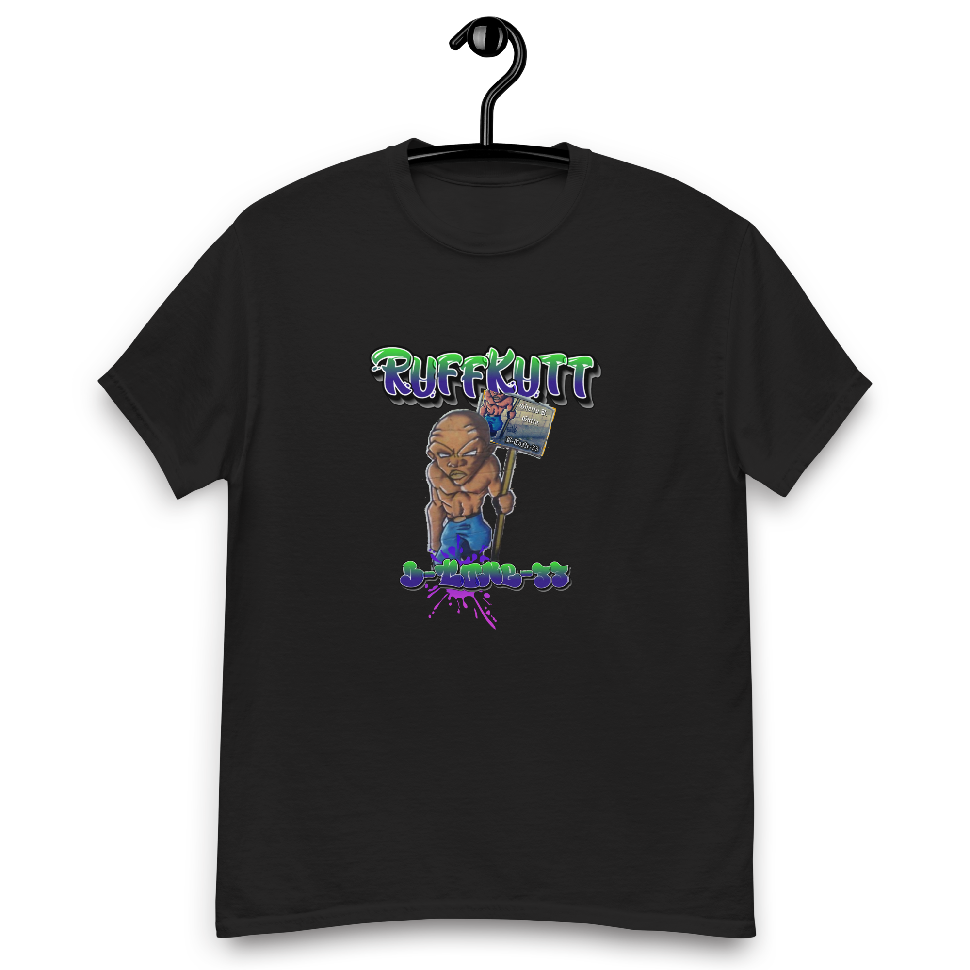 Represent your allegiance to raw, unapologetic underground music and streetwear with this Official B-ToNe-33 – Ghetto.B.Gutta tee. Where gritty sonic artistry meets RuffKutt’s iconic urban style.